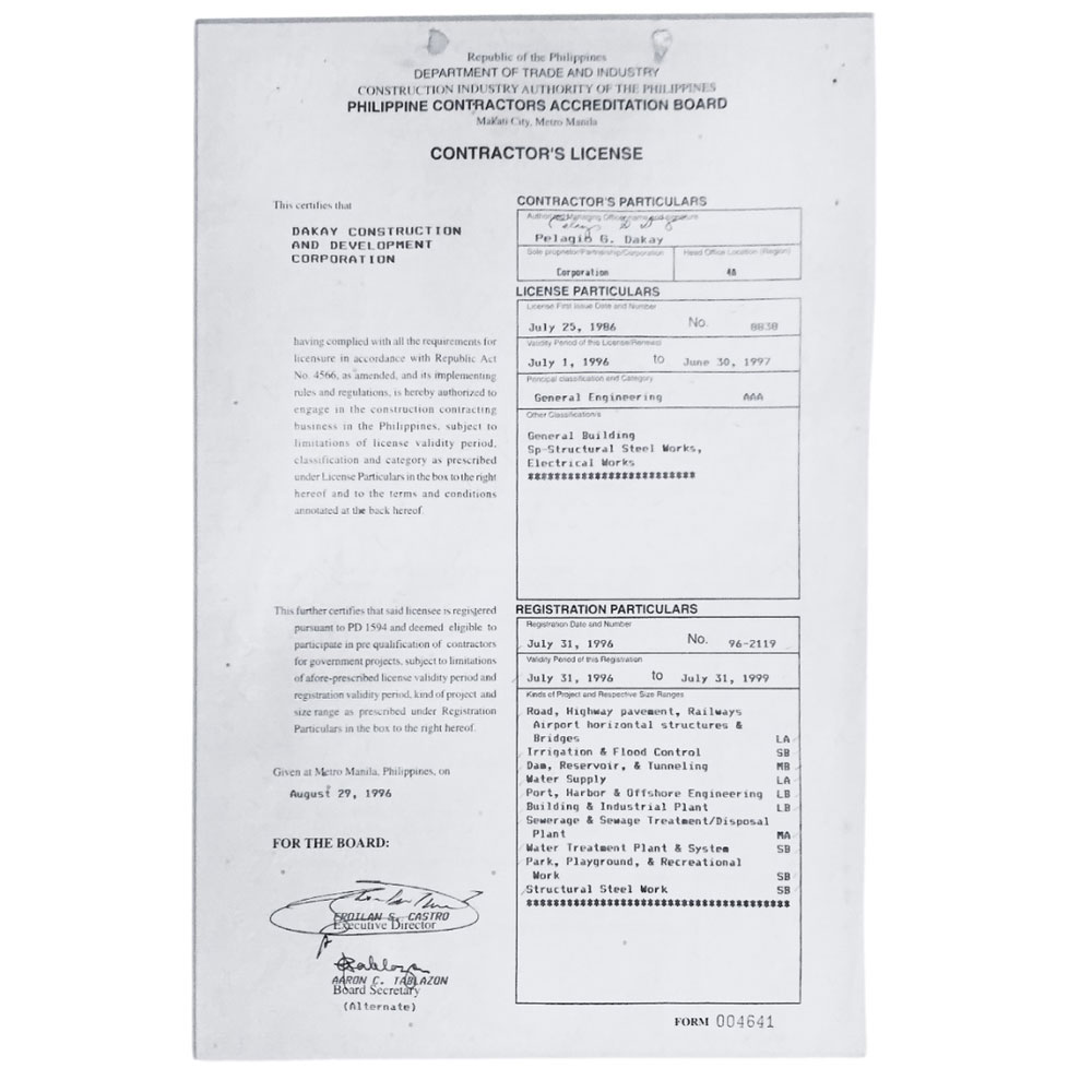 Dakay Construction & Development Corporation seeks to create a niche in the construction industry. To ensure customer satisfaction, DCDC strives to provide quality construction services that exceed clientele expectations. A wide range of machinery and equipment acquired to cater to various construction needs complements such services. DCDC is proud of its competent and highly-qualified personnel trained to serve the complex demands of its clients. Lastly, DCDC believes that profit resulting from the quality service it offers is a by-product of the quality service rendered, thereby ensuring the organization’s existence and growth.